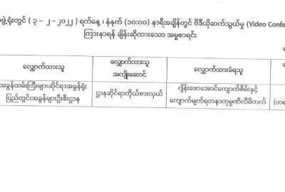 - အခွန်အယူခံခုံအဖွဲ့ရုံးတွင် ၂၄-၃-၂၀၂၂ ရက်နေ့၊ နံနက်(၁၀:၀၀)နာရီအချိန်တွင် ဗီဒီယိုဆက်သွယ်မှု (Video Conferencing)ဖြင့် ကြားနာရန်ချိန်းဆိုထားသော အမှုများစာရင်း