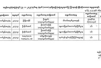 - အခွန်အယူခံခုံအဖွဲ့ရုံးတွင် ၂၅-၁-၂၀၂၂ ရက်နေ့၊ နံနက်(၁၀:၀၀)နာရီအချိန်တွင် ဗီဒီယိုဆက်သွယ်မှု (Video Conferencing)ဖြင့် ကြားနာရန်ချိန်းဆိုထားသော အမှုများစာရင်း